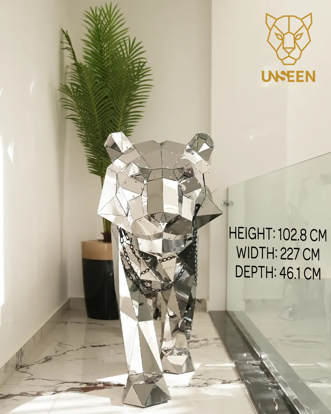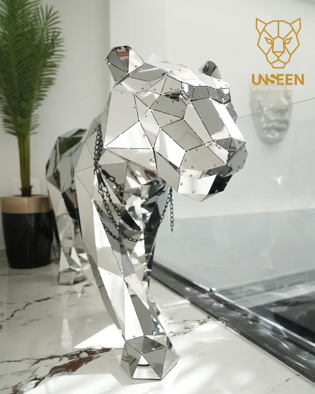 Its reflective surfaces and sharp, precise lines bring a bold presence to any sophisticated environment — from luxury interiors and executive offices to contemporary galleries.